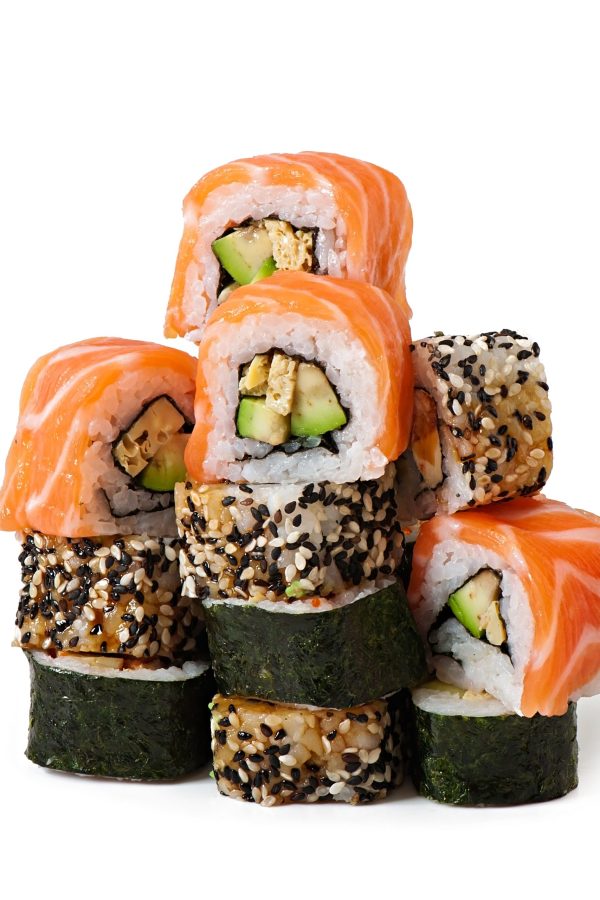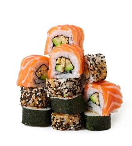 En god blanding til dig, der elsker variation! Sushi med laks, rejer, avocado og farverig tobiko. Inkl. ingefær, wasabi og soya.